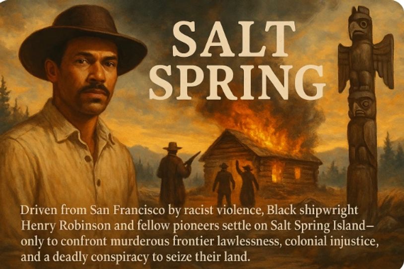 "Salt Spring" is a sweeping historical epic based on real events and people, meticulously reconstructed through archival research and personal correspondence. It transforms the conventional story of Canadian settlement by uncovering the struggles and victories of Black pioneers from pre-Civil War California who sought refuge and justice in the new colony of British Columbia.